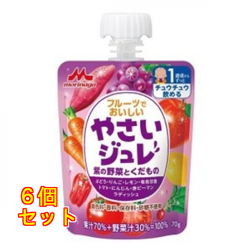 | 名称 やさいジュレ 紫の野菜とくだもの 内容量 70g 商品説明 1歳ごろからずとチュウチュウ飲めるやさいジュレです。コクのあるぶどうの美味しさを活かして、やさしい味に仕上げました。 使用方法・用法及び使用上の注意 ・開封後はすぐにお子様にあげてください。 ・誤飲防止のため、キャップは大人の方が開封してください。 ・容器のふちでけがしないようにご注意ください。 保管および取扱い上の注意 高温・直射日光を避け、常温で保存してください。 原材料 ・果実(ぶどう、りんご、レモン)、野菜(有色甘藷、トマト、にんじん、赤ピーマン、ラディッシュ)、果糖ぶどう糖液糖、寒天、ゲル化剤(増粘多糖類) 栄養成分表示:1袋(70g)当たり/エネルギー:43kcal、たんぱく質:0.2g、脂質:0g、炭水化物:10.6g、ナトリウム:8mg、ショ糖:0.3g 発売元、製造元、輸入元又は販売元、消費者相談窓口 森永乳業株式会社 東京港区芝5-33-1 電話:0120-303-633(育児・栄養食品) |