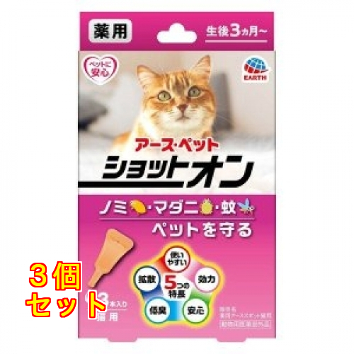 アースペット 薬用ショットオン 猫用 約1ヶ月分 3本入 4994527915304×3個