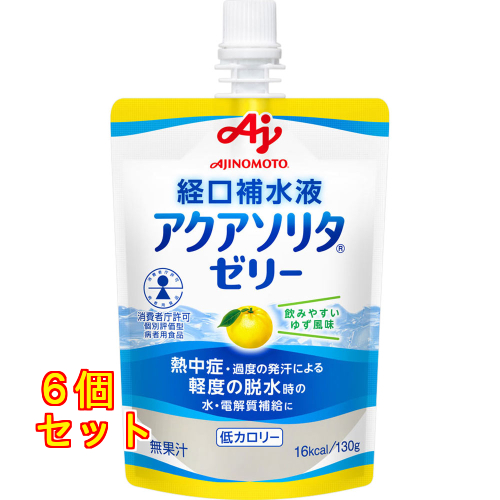 | 商品名 経口補水液 アクアソリタゼリー ゆず風味 内容量 130g 商品説明 ●熱中症・過度の発汗による軽度の脱水時の水・電解質補給に適した経口補水液です。 ●低カロリー ●特別用途食品個別評価型病者用食品。 ●飲みやすいゆず風味 原材料 ぶどう糖(国内製造)、寒天、食塩/酸味料、ゲル化剤(増粘多糖類)、甘味料(キシリトール、アスパルテーム・L−フェニルアラニン化合物、アセスルファムK、スクラロース)、塩化K、リン酸K、塩化Ca、塩化Mg、香料、乳化剤 栄養成分 1袋(130g)あたり エネルギー16kcal、タンパク質0g、脂質0mg、炭水化物4.1mg、ナトリウム0mg、食塩相当量0.27mg お問い合わせ先 味の素株式会社 東京都中央区京橋1丁目15−1 栄養ケアお客様係:0120−814−222 |