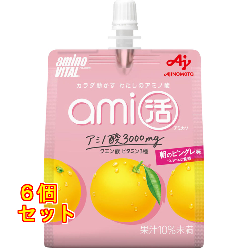| 商品名 アミノバイタル ami活ゼリー 朝のピングレ味 内容量 180g 商品説明 ●カラダを動かすあなたのためのアミノ酸。毎日をもっと気持ちよく、もっと楽しく。そんなあなたのココロとカラダをサポートします。 ●朝に飲むことで、心地よい1日のスタートと、その日1日のアクティブな活動をサポートします。 ●つぶつぶ食感が楽しめるピンクグレープフルーツ味。 原材料 砂糖(国内製造)、デキストリン、エリスリトール、グレープフルーツ果汁、寒天、こんにゃく粉/クエン酸(Na)、アラニン、アルギニン、ロイシン、V.C、イソロイシン、バリン、ゲル化剤(増粘多糖類)、プロリン、塩化K、乳酸Ca、乳化剤、甘味料(アセスルファムK、アスパルテーム・L−フェニルアラニン化合物)、調味料(アミノ酸等)、香料、着色料(トマトリコピン)、V.B1、V.B2、(一部に大豆を含む) 栄養成分 1袋(180g)あたり エネルギー 120kcal、たんぱく質 3.0g、脂質 0g、炭水化物 30g、食塩相当量 0.30g、ビタミンB 0.6mg、ビタミンB 0.7mg、ビタミンC 200mg、アミノ酸 30g(ロイシン0.37g、イソロイシン0.19g、バリン0.19g、アルギニン0.75g、プロリン0.15g、アラニン1.35g) クエン酸 1700mg お問い合わせ先 味の素株式会社 東京都中央区京橋1−15−1 お客様相談センター:0120-16-0505 |