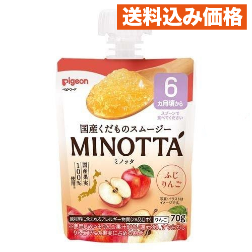 | 商品名 くだものスムージー MINOTTA ふじりんご 内容量 70g 商品説明 ●赤ちゃんがペロッと食べちゃうおいしさにこだわって国産素材で作ったベビースムージーです。 ●6カ月ごろから。スプーンで食べてください。 ●国産果実100%使用。 ●すりおろした果実のような食感が楽しめる。 ●下ごしらえ不要。面倒な皮むき、調理器具の洗浄も必要なし。 ●甘み・酸味のバランスが良い、ふじりんご使用。 お召し上がり方 ・6カ月からスプーンで食べてください。 ・直飲みは12カ月頃から ・水分を多く含んでいますので、よくもみほぐしてからお召し上がりください。 原材料 りんご濃縮果汁(ふじりんご100%)(国内製造)、すりおろしりんご(ふじりんご100%)、寒天/pH調整剤、ゲル化剤(増粘多糖類)、乳化剤 栄養成分 1袋(70g)あたり) エネルギー:36kcal、たんぱく質:0.07g、脂質:0g、炭水化物:8.8g、食塩相当量:0.08g この表示値は、目安です。 お問い合わせ先 ピジョン株式会社 東京都中央区日本橋久松町4番4号 お客様相談室:0120-741-887 受付時間:9時〜17時(土・日・祝日は除く) 12時〜12時45分はお電話での受付を休止しております。 |