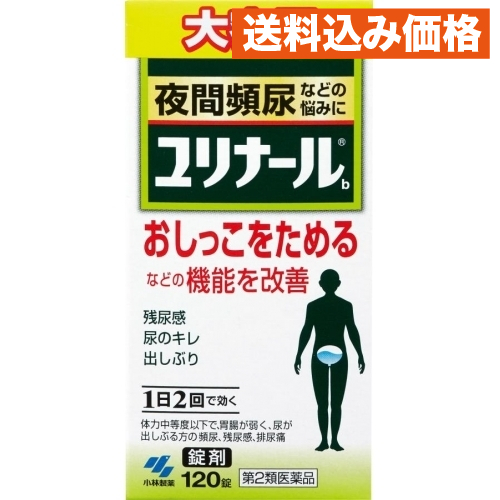 | 医薬品の使用期限 医薬品に関しては特別な表記の無い限り、1年以上の使用期限のものを販売しております。1年以内のものに関しては使用期限を記載します。 商品名 ユリナールb120錠 内容量 120錠 効能・効果 体力中等度以下で、胃腸が弱く、全身倦怠感があり、口や舌が乾き、尿が出しぶるものの次の諸症: 頻尿、残尿感、排尿痛、排尿困難、尿のにごり、こしけ(おりもの) 用法・容量 次の量を食前または食間に水またはお湯で服用してください 年 齢 /1回量/1日服用回数 大人(15才以上)/5 錠/ 2回 15才未満 /× 服用しないこと <用法・用量に関連する注意> (1)定められた用法・用量を厳守すること (2)吸湿しやすいため、服用のつどキャップをしっかりしめること ●食間とは「食事と食事の間」を意味し、食後約2〜3時間のことをいいます 成分 清心蓮子飲 使用上の注意 <相談すること> 1.次の人は服用前に医師、薬剤師または登録販売者に相談すること (1)医師の治療を受けている人 (2)妊婦または妊娠していると思われる人 2.服用後、次の症状があらわれた場合は副作用の可能性があるので、直ちに服用を中止し、この文書を持って医師、薬剤師または登録販売者に相談すること まれに下記の重篤な症状が起こることがある その場合は直ちに医師の診療を受けること ●症状の名称 /症状 ●間質性肺炎 /階段を上ったり、少し無理をしたりすると息切れがする・息苦しくなる、空せき、発熱などがみられ、これらが急にあらわれたり、持続したりする ●肝機能障害 /発熱、かゆみ、発疹、黄だん(皮ふや白目が黄色くなる)、褐色尿、全身のだるさ、食欲不振などがあらわれる 3.1ヶ月くらい服用しても症状がよくならない場合は服用を中止し、この文書を持って医師、薬剤師または登録販売者に相談すること 原産国 日本 販売、発売、製造、または輸入元 小林製薬(株) 発売元、製造元、輸入元又は販売元、消費者相談窓口 小林製薬株式会社 〒541-0045 大阪市中央区道修町4丁目4番10号 KDX 小林道修町ビル お客様相談室:0120-5884-01(医薬品) 原産国 日本 |