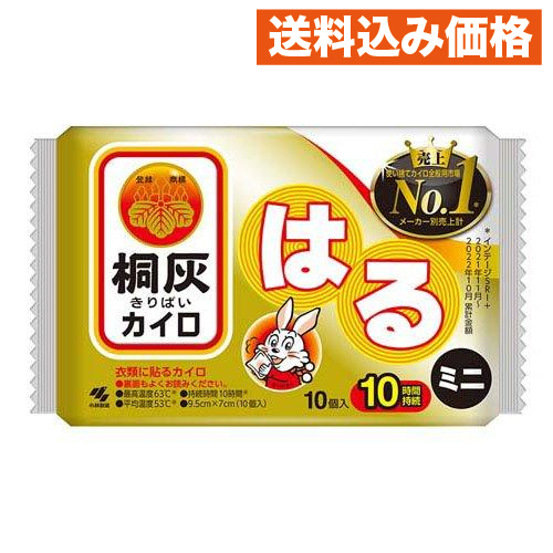 | 名称 桐灰カイロ はるタイプ ミニ 10個入 内容量 10個入 使用方法・用法及び使用上の注意 使用上の注意 就寝時は使用しない。 布団の中や暖房器具の併用は高温になるため使用しない。 糖尿病など、温感および血行に障害のある方は使用しない。 幼児又は身体の不自由な方など本人の対応が困難な場合は保護者が注意する。 肌の弱い方は特に低温やけどに注意する。 肌に直接貼らない。 圧迫した状態で使用しない。 熱すぎると感じたときはすぐに使用を中止する。 万一やけどの症状があらわれた場合はすぐに使用を中止し、医師に相談する。 保管および取扱い上の注意 使用後は市区町村の区分に従って捨てる。 粘着剤で傷む衣類や高級な衣類には使用しない。 衣類よりはがすときは、不織布部をつままずに粘着剤のない部分に指を入れてゆっくりとはがす。 一部の保温性衣類では、カイロがつきにくいことがある。 小児、認知症の方などの誤食に注意する。 用途外には使用しない。 直射日光をさけ、涼しい所に保存する。 小児、認知症の方などの手の届くところに置かない。 原材料 鉄粉、水、活性炭、吸水性樹脂、バーミキュライト、塩類 発売元、製造元、輸入元又は販売元、消費者相談窓口 お問い合わせ先 〒541-0045 大阪市中央区道修町4丁目4番10号 小林製薬株式会社 お客様相談室 宛 電話番号:0120-5884-35 受付時間:9:00〜17:00(土・日・祝日は除く) |