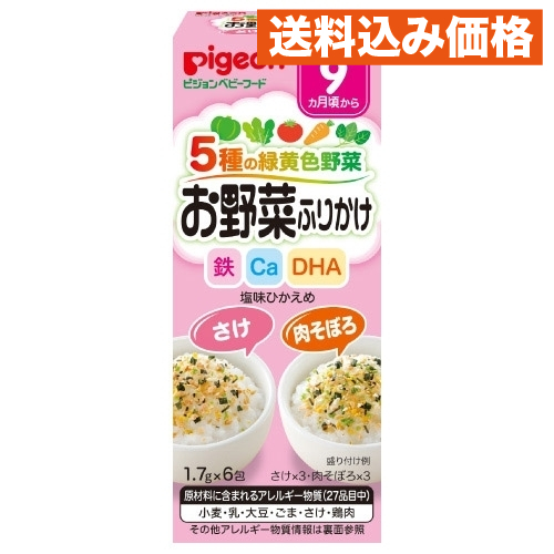 | 商品名 赤ちゃんのお野菜ふりかけ さけ/肉そぼろ 1,7g×6袋 商品説明 たくさんの種類の野菜を使った、選ぶ楽しさが広がるアソートふりかけです。 緑黄色野菜を5種類配合。 カルシウム・鉄分・食物繊維・DHA入り。 カルシウムと鉄分は、1日の必要量の1/3摂取可能。 着色料・保存料・香料は使用していません。 使用上の注意 高温、多湿、直射日光を避け、常温で保存してください。 原材料/成分 【さけ】 でん粉、乳糖、ごま、鮭、昆布、野菜(モロヘイヤ、グリンピース、ほうれん草、トマト、かぼちゃ、にんじん)、かつお削り節、のり、水溶性食物繊維、食塩、砂糖、醸造酢、エキス(酵母、魚介、しいたけ、昆布)、乳清カルシウム、デキストリン、たんぱく加水分解物、DHA含有精製魚油、貝カルシウム、クエン酸第一鉄ナトリウム、酸化防止剤(ビタミンE) (原材料の一部に大豆、小麦を含む) 【肉そぼろ】 でん粉、乳糖、ごま、鶏肉、昆布、野菜(モロヘイヤ、グリンピース、ほうれん草、トマト、かぼちゃ、にんじん)、のり、かつお削り節、水溶性食物繊維、食塩、砂糖、醸造酢、エキス(酵母、魚介、しいたけ、昆布)、乳清カルシウム、デキストリン、たんぱく加水分解物、DHA含有精製魚油、貝カルシウム、クエン酸第一鉄ナトリウム、酸化防止剤(ビタミンE) (原材料の一部に大豆、小麦を含む) ※原材料に含まれるアレルギー物質 【さけ】乳、小麦、大豆、さけ、ごま(厚生労働省選定27品目) 【肉そぼろ】乳、小麦、大豆、鶏肉、ごま(厚生労働省選定27品目) ※本品製造工場では卵、えび、かに、そば、落花生を含む製品を製造しています。 ※本品で使用しているのりは、えび、かにが混ざる方法で採取しています。 販売、発売、製造、または輸入元 ピジョン株式会社 〒103-8480 東京都中央区日本橋久松町4番5号 お問合せ先 ピジョン株式会社 お客様相談室 0120ー741ー887 受付時間 9時~17時(土・日・祝日は除く) 原産国 日本 |