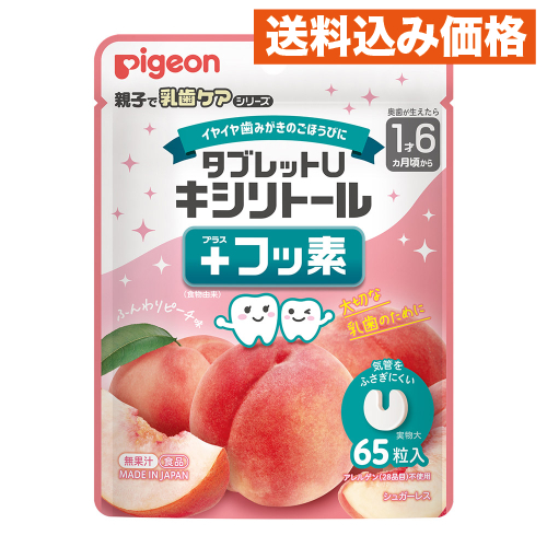 | 商品名 タブレットU キシリトール+フッ素 ふんわりピーチ味 内容量 65粒入 商品説明 ●歯みがき後のごほうびに。 ●歯みがき後でも安心(シュガーレス・アレルゲン不使用) ●乳歯ケアの2大成分キシリトールとフッ素(食物由来)配合 ●気管をふさぎにくいU字型。誤って飲み込んでも気管をふさがないよう安全に配慮した形 ●アレルゲン28品目不使用 ●歯みがきが苦手なお子さまのがんばる気持ちを応援します。 ●キシリトールとフッ素の量はお子さま向けに調整しています。 使用方法 1回に1粒、1日に3粒を目安にお召し上がりください。 原材料 甘味料(キシリトール)、乳化剤、糊料(CMC)、香料/マルチトール(国内製造)、食物繊維(ポリデキストロース)、粉末油脂、緑茶エキスパウダー 栄養成分 1製品(37g)あたり エネルギー:128Kcal、たんぱく質:0g、脂質:4.1g、炭水化物:32.7g、糖類:0g、食塩相当量:0.06g、キシリトール:25.5g、フッ素(緑茶エキスパウダー由来):11μg お問い合わせ先 ピジョン株式会社 東京都中央区日本橋久松町4-4 お客様相談室:0120-741-887 受付時間:9時〜17時(土・日・祝日を除く) |
