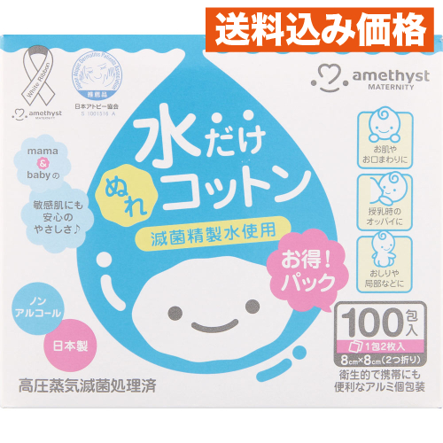 | 商品名 アメジストママとベビーの水だけぬれコットン 内容量 100包入 商品説明 ●滅菌精製水(パイロジェンフリー水)だけを使用 ●敏感肌にも安心なウェットコットン ●ウォータージェット加工脱脂綿使用 ●1包ずつ密封しており、信頼性の高いアルミ包装なので衛生的で、携帯にも便利です。 ●天然コットンを使用 ●高圧蒸気滅菌処理済 ●ノンアルコール、薬液不使用、安心の日本製です。 ●お肌やお口まわりに、授乳時のオッパイに、おしりや局部などに ●日本製 原材料 脱脂綿、滅菌精製水(パイロジェンフリー水)100%、アルミ包材 寸法 130mm×120mm×110mm お問い合わせ先 大衛株式会社 大阪府大阪市都島区都島本通2-2-16 お客様相談窓口:06−6921−7373 受付時間:土、日、祝日を除く9:00〜17:00まで |