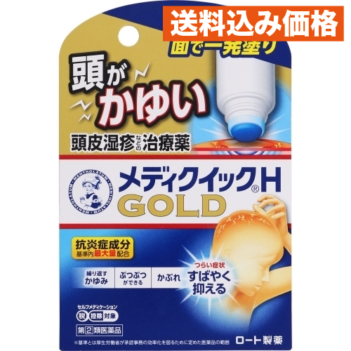 | 医薬品の使用期限 医薬品に関しては特別な表記の無い限り、1年以上の使用期限のものを販売しております。1年以内のものに関しては使用期限を記載します。 名称 メディクイックH ゴールド スポンジヘッド 50ml 内容量 50mL 商品説明 「頭皮のかゆみ」に着目し、抗炎症成分を基準内最大量配合*1。PVA(アンテドラッグステロイド*2)+グリチルレチン酸の高い消炎効果で、炎症・かゆみをしっかり鎮めます。スポンジヘッドで吐出部が面の為、患部へ一気に塗りこめます。スーッとクールな使い心地。*1:一般用鎮痒消炎薬製造販売承認基準の最大量(濃度)配合*2:患部で効果を発揮し、体内に吸収されると分解して、低活性の物質にかわるステロイドのこと 用法・容量/使用方法 [用法・用量] 1日数回、適量を患部に塗布してください。 効能・効果 湿疹、皮フ炎、かゆみ、かぶれ、じんましん、あせも、虫さされ 使用上の注意 1.用法・用量を厳守してください。 2.小児に使用させる場合には、保護者の指導監督のもとに使用させてください。 3.目に入らないようご注意ください。万一、目に入った場合には、すぐに水またはぬるま湯で洗ってください。なお、症状が重い場合には、眼科医の診療を受けてください。 4.外用のみにご使用ください。 5.使用前に、スポンジ面を患部に数回押し当て、スポンジ面に薬剤を十分浸みこませて塗布してください。 保管上の注意 (1)直射日光の当たらない涼しい所に密栓して保管してください。 (2)小児の手の届かない所に保管してください。 (3)他の容器に入れ替えないでください。(誤用の原因になったり品質が変わる) (4)使用期限(外箱に記載)を過ぎた製品は使用しないでください。 (5)本剤はアルコール類を含むため、メガネ、アクセサリー類、時計、寝具、家具、床、化繊製品、プラスチック類、皮革製品などにつかないように十分ご注意ください。(材質によっては落ちにくいことや変色することがあります) (6)染めた髪につくと色落ちすることがあります。 (7)火気に近づけないでください。 原材料/成分 1mL中 有効成分・・・分量・・・作用 プレドニゾロン吉草酸エステル酢酸エステル(PVA)(アンテドラッグステロイド)・・・1.5mg・・・炎症をしっかり鎮める グリチルレチン酸・・・10mg・・・炎症をしっかり鎮める クロタミトン・・・50mg・・・かゆみを抑える アラントイン・・・2mg・・・皮ふを修復 イソプロピルメチルフェノール・・・1.5mg・・・患部を殺菌 l-メントール・・・35mg・・・清涼成分 添加物として、エタノール、1,3-ブチレングリコール、ラウロマクロゴール、疎水化ヒドロキシプロピルメチルセルロース、pH調節剤、ヒアルロン酸Naを含有する。 販売、発売、製造、または輸入元 ロート製薬株式会社 〒544-8666 大阪市生野区巽西1-8-1 お問合せ先 お客さま安心サポートデスク 電話…東京:03-5442-6020 大阪:06-6758-1230 電話受付時間…9:00?18:32(土、日、祝日を除く) 原産国 日本 |