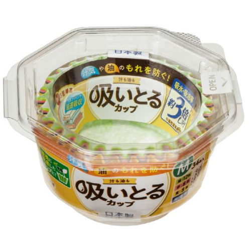 | 商品名 汁も油も吸いとるカップ M 4色 内容量 34枚入 商品説明 ●汁も油も吸いとるカップです。 時間が経っても揚げ物がべたつかず、汁物にも安心してお使いいただけます。 ●吸水・吸油すると内側にもデザインが浮き出るので、しっかり吸いとっていることが一目でわかる! ●主役のおかずを引き立てる色・デザイン。 ●毎日使うものなので環境やさしい、環境配慮型商品。 ●ラベルにFSC認証紙を使用。 包装容器にはバイオマス10%含有PETを使用。 ●天然コットンで超速吸収。 規格概要 サイズ:M 本体重量(約):総重量/23g 素材・材質:コットン/バイオPET/PET 生産国:日本 製造販売元 東洋アルミニウム株式会社 |