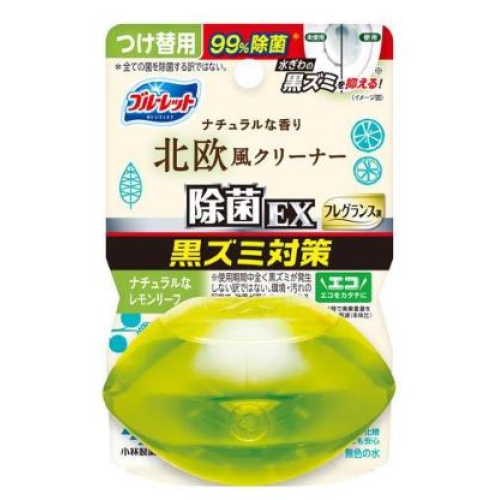 | 名称 小林製薬 液体ブルーレット おくだけ除菌EX フレグランス 北欧風クリーナー レモンリーフ つけ替用 67mL 内容量 67mL 使用方法・用法及び使用上の注意 使用できないトイレ ・タンクに手洗いのないトイレ ・タンクの水をおしり洗浄に使うトイレ ・簡易水洗トイレ(くみ取り式) 注意 ・ボトルについている止栓キャップを絶対にはずさないでください。 (1)(お願い)効果を発揮させるために、便器を掃除してからご使用ください。 (2)逆さまに持って突起部で止栓キャップを突き破り、ボトルと下容器に隙間がないように差し込む。 (注意)脚部で絶対ささない (3)手洗い部に置き、液の通りをよくするためにボトルを2〜3回へこむ程度に強く押す。 セットが不十分な場合は液がこぼれ、短期間でなくなる場合があります。 自然に液が減るので容器に直接水があたらなくても使えます。 ・薬剤がなくなりましたら、「つけ替用」をお求めください。 用法・用量 液性:弱酸性〜弱アルカリ性 用途:水洗トイレ用 使用量の目安:手洗い付トイレタンクに1個 成分・分量 界面活性剤(67% ポリオキシアルキレンアルキルエーテル、第四級アンモニウム塩系)、安定化剤(グリセリン)、香料 保管および取扱い上の注意 使用上の注意 ・用途外に使用しない。 ・誤飲防止のため、小児、認知症の方等の手の届くところに置かない。 ・火気の近くや直射日光の当たる所、高温になる所で保管・使用しない。 ・水流が強すぎると水がはねたり、容器が倒れ手洗い部の穴を塞ぎ水があふれる恐れがあるので、タンク横の止水栓を調節して水流を弱める。 ・使用中、逆さまや横倒しで放置しない。 ・手洗い部から水があふれるのを防ぐため、手洗い部の穴に網がある・水の流れが悪い・下容器が汚れてきた等の場合は、網・下容器を清掃する。 応急処置 ・目に入った場合は、目を傷めることがあるのでこすらずすぐ 流水で15分以上洗い流し、ただちに眼科医に相談する。 ・飲み込んだ場合、吐かせずコップ1〜2杯の水を飲ませる。 ・皮ふについたら充分に洗い流す。 ・気分が悪くなったら使用をやめる。 ・異常があればこの説明書きを持参し、医師に相談する。 誤飲に注意 子供に注意 発売元、製造元、輸入元又は販売元、消費者相談窓口 お問い合わせ 電話番号:0120-5884-07 受付時間:9:00〜17:00(土・日・祝日は除く) |