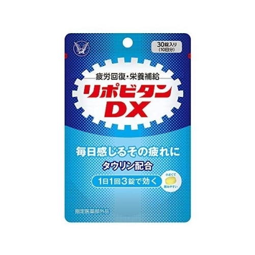 | 商品名 【指定医薬部外品】 リポビタンDX 10日分 内容量 30錠入り 効能・効果 ●疲労の回復・予防 ●日常生活における栄養不良に伴う身体不調の改善・予防:疲れやすい・疲れが残る・体力が無い・身体が重い・身体がだるい、肩・首・腰又は膝の不調、二日酔いに伴う食欲の低下・だるさ、寝つきが悪い・眠りが浅い・目覚めが悪い、肌の不調(肌荒れ、肌の乾燥) ●体力,身体抵抗力又は集中力の維持・改善 ●虚弱体質(加齢による身体虚弱を含む。)に伴う身体不調の改善・予防 ・疲れやすい・疲れが残る・体力がない・身体が重い・身体がだるい ・肩・首・腰又は膝の不調 ・寝付きが悪い・眠りが浅い・目覚めが悪い ・肌の不調(肌荒れ,肌の乾燥) ●病中病後の体力低下時,発熱を伴う消耗性疾患時,食欲不振時,妊娠授乳期又は産前産後等の栄養補給 用法・用量 成人(15才以上)1日1回3錠を水又はぬるま湯で服用してください。 成分 3錠中 タウリン 500mg チアミン硝化物(ビタミンB1) 10mg リボフラビン(ビタミンB2) 5mg ピリドキシン塩酸塩(ビタミンB6) 5mg アスコルビン酸カルシウム 100mg(ビタミンCとして 82.6mg) カルニチン塩化物 10mg グリシン 5mg サンヤク末 10mg シゴカ乾燥エキス 8mg(シゴカ200mg に相当) 添加物:無水ケイ酸、セルロース、ヒドロキシプロピルセルロース、ステアリン酸Mg、タルク、マクロゴール、酸化チタン、ヒプロメロース、三二酸化鉄、カルナウバロウ お問い合わせ先 大正製薬株式会社 お客様119番室:03-3985-1800 受付時間:8:30〜21:00(土,日,祝日を除く) |