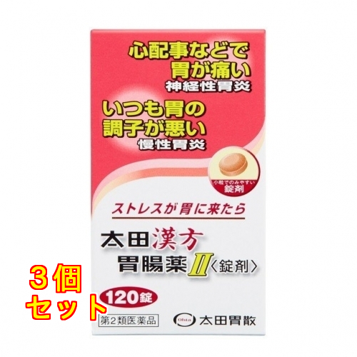 | 医薬品の使用期限 医薬品に関しては特別な表記の無い限り、1年以上の使用期限のものを販売しております。1年以内のものに関しては使用期限を記載します。 名称 【第2類医薬品】太田漢方胃腸薬II 錠剤 内容量 120錠 使用方法・用法及び使用上の注意 次の量を食間(就寝前を含む)又は空腹時に服用してください 年齢 1回量 服用回数 成人(15歳以上) 3錠 1日3回 7〜14歳 2錠 7歳未満 服用しないこと 相談すること 1.次の人は服用前に医師、薬剤師又は登録販売者に相談してください (1)医師の治療を受けている人。 (2)妊婦又は妊娠していると思われる人。 (3)今までに薬などにより発疹・発赤、かゆみ等を起こしたことがある人。 2.服用後、次の症状があらわれた場合は副作用の可能性があるので、直ちに服用を中止し、この説明書を持って医師、薬剤師又は登録販売者に相談してください 関係部位 症状 皮膚 発疹・発赤、かゆみ 3.1ヵ月位服用しても症状がよくならない場合は服用を中止し、この説明書を持って医師、薬剤師又は登録販売者に相談してください 効能・効果 体力中等度以下で、腹部は力がなくて、神経過敏で胃痛又は腹痛があって、ときに胸やけや、げっぷ、胃もたれ、食欲不振、はきけ、嘔吐などを伴うものの次の諸症: 神経性胃炎、慢性胃炎、胃腸虚弱 成分・分量 1日量(9錠)中 安中散加茯苓末:2100mg (下記生薬の混合末) ブクリョウ (茯 苓):500mg ケイヒ (桂 皮):300mg エンゴサク (延胡索):300mg ボレイ (牡 蛎):300mg ウイキョウ (茴 香):200mg シュクシャ (縮 砂):200mg カンゾウ (甘 草):200mg リョウキョウ(良 姜):100mg 安中散料加茯苓エキス:270mg (下記生薬のエキス) ブクリョウ (茯 苓):810mg ケイヒ (桂 皮):486mg エンゴサク (延胡索):486mg ボレイ (牡 蛎):486mg ウイキョウ (茴 香):324mg シュクシャ (縮 砂):324mg カンゾウ (甘 草):324mg リョウキョウ(良 姜):162mg 保管および取扱い上の注意 (1)直射日光の当たらない湿気の少ない涼しい所に保管してください。 (2)小児の手の届かない所に保管してください。 (3)他の容器に入れ替えないでください。 (誤用の原因になったり品質が変わることがあります。) (4)使用期限を過ぎた製品は服用しないでください。 発売元、製造元、輸入元又は販売元、消費者相談窓口 お問い合わせ先 株式会社 太田胃散 「お客様相談室」 電話番号:(03)3944-1311 電話受付時間:9:30〜17:00(土、日、祝日を除く) 原産国 日本 商品区分 第2類医薬品 |