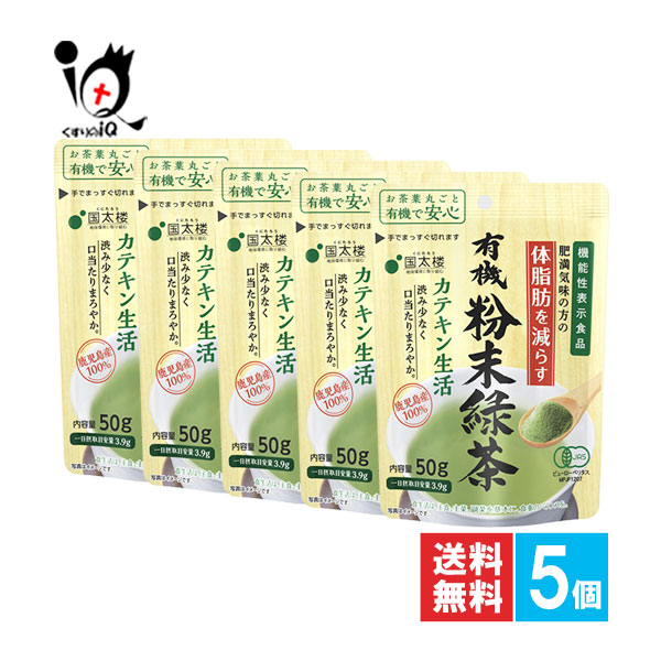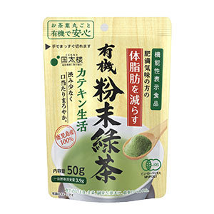 【機能性表示食品】有機粉末緑茶カテキン生活 50g×5個セット【国太楼】肥満気味な方の体脂肪を減らすのを助ける 渋味が少なく口当たりまろやか 緑茶 粉末緑茶 粉茶 カテキン カテキン緑茶 カテキン茶