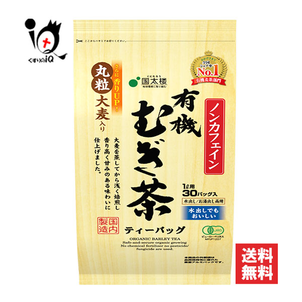 有機むぎ茶TB 30袋入【国太楼】香り高く甘みのある味わい 水出しでもおいしい 水出し・お湯出し両用 ティーバッグ ノンカフェイン 麦茶 むぎ茶 むぎちゃ 有機大麦使用 さらに香りアップ丸粒大麦入り