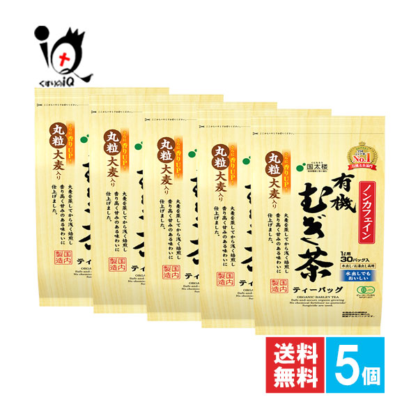有機むぎ茶TB 30袋入×5個セット【国太楼】香り高く甘みのある味わい 水出しでもおいしい 水出し・お湯出し両用 ティーバッグ ノンカフェイン 麦茶 むぎ茶 むぎちゃ 有機大麦使用 さらに香りアップ丸粒大麦入り