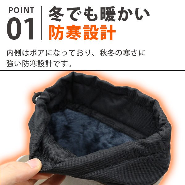 内側はボアになっており、秋冬の寒さに強い防寒設計です。