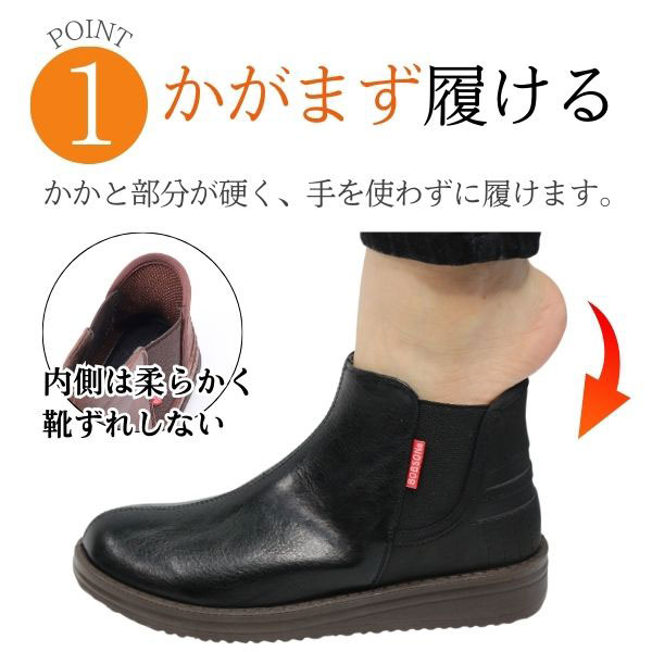 かかとが硬いので手を使わなくても、立ったまま履くことができます。しゃがまなくて良いので、妊婦さんやシニアの方にも人気です。