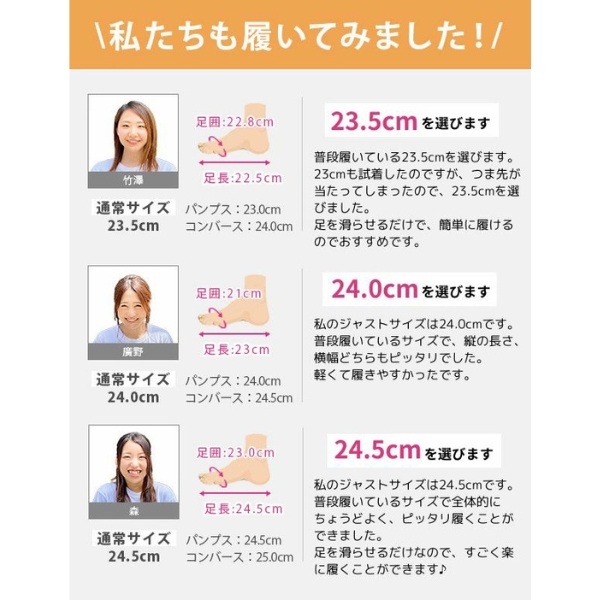 取り扱いサイズ:22.5cm 23cm 23.5cm 24cm 24.5cm