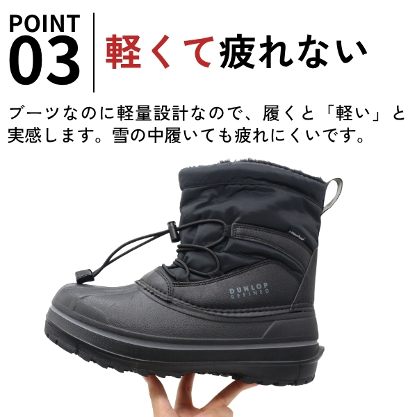 ブーツなのに軽量設計なので、履くと「軽い」と実感します。雪の中履いても疲れにくいです。