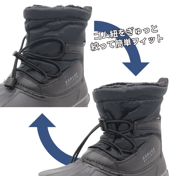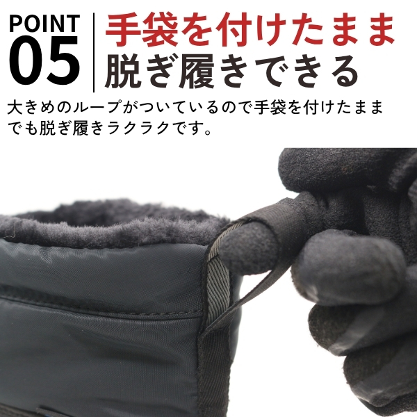 防水設計と撥水加工で雨や雪での水の侵入を防ぎ快適な履き心地。
