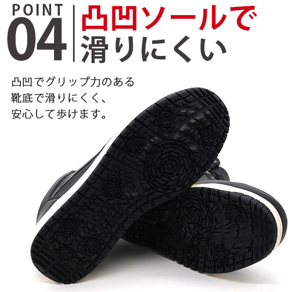 グリップ性が強い防滑ソールを使用しているので、滑りにくく濡れた路面も安心して歩いていただけます。