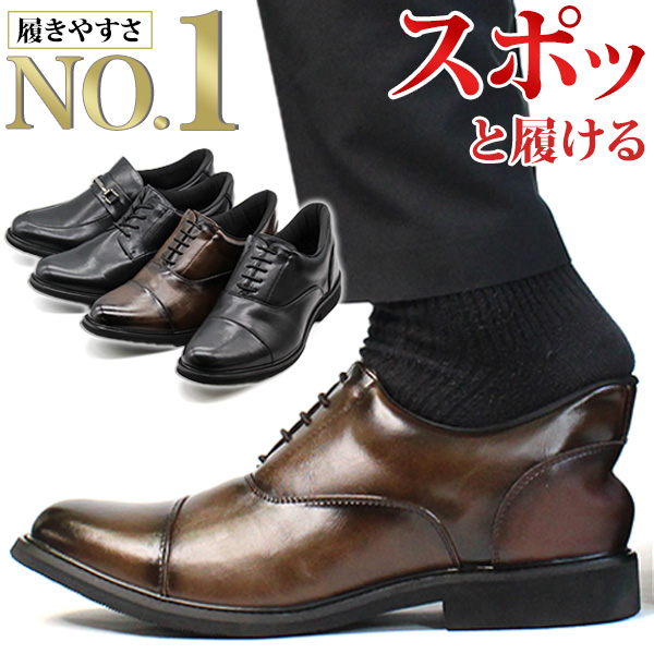 かかとにバネが入っているため、手を使わずにかがまずに履けます。靴ベラいらずで1秒で素早く履くことができます。履き口には柔らかいクッションがあり、靴擦れしません。アッパーにはマットな質感の素材を使用。合成皮革ならではの洗練された印象を与えます。足に馴染みやすい柔らかい素材を使用しており、快適に歩けます。