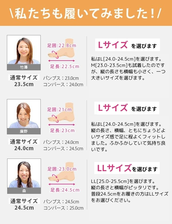 取り扱いサイズ:M[23.0-23.5cm] L[24.0-24.5cm] LL[25.0-25.5cm]