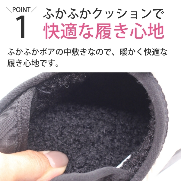 ふかふかボアの中敷きで暖かく快適な履き心地です。