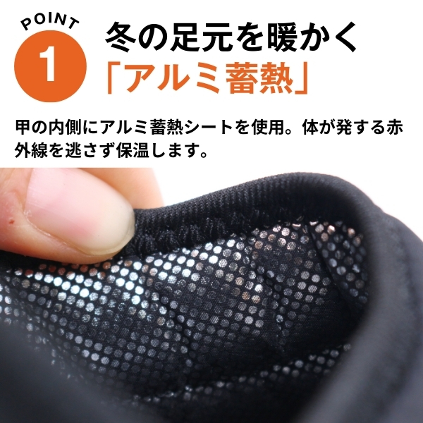 甲の内側にアルミ蓄熱シートを使用。体が発する赤外線を逃さず保温します。