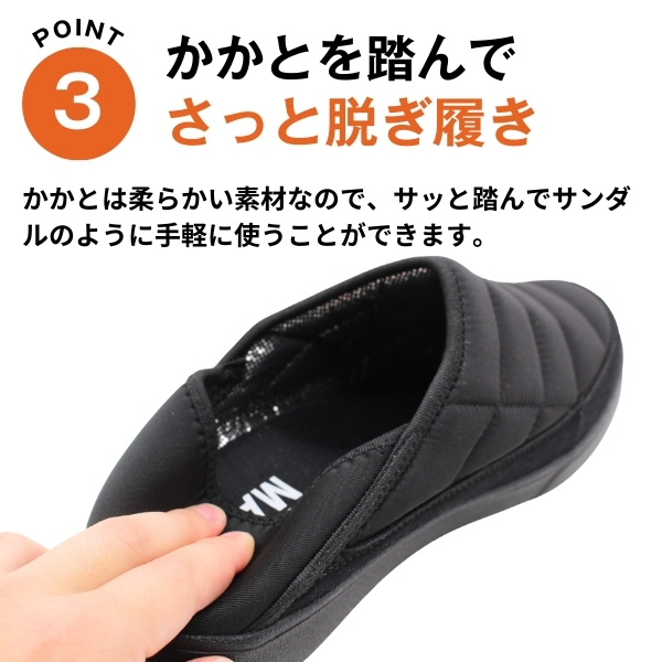 かかとは柔らかい素材なので、サッと踏んでサンダルのように手軽に使うことができます。