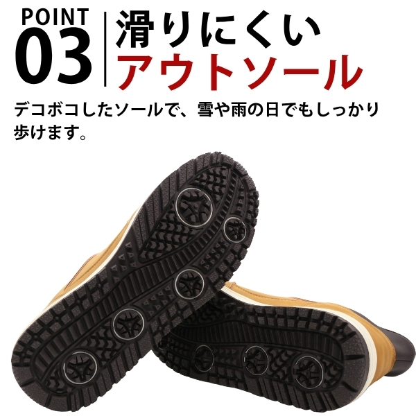 4cm×4時間の防水設計で、雨でも濡れずに快適です。天気を気にせず履くことができます。