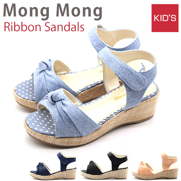 ラメ入りの生地・リボン・インソールの水玉、女の子の「可愛い」を詰め込んだお出掛けが楽しくなるサンダルです。