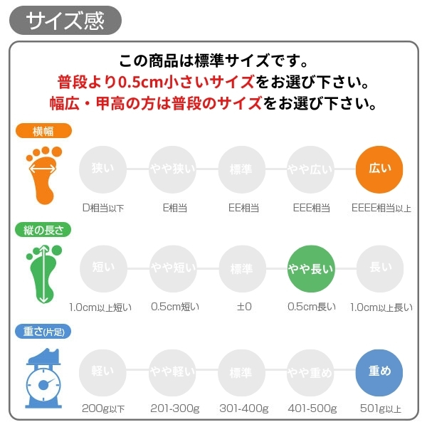 甲高、幅広の方→「0.5cm大きめ」