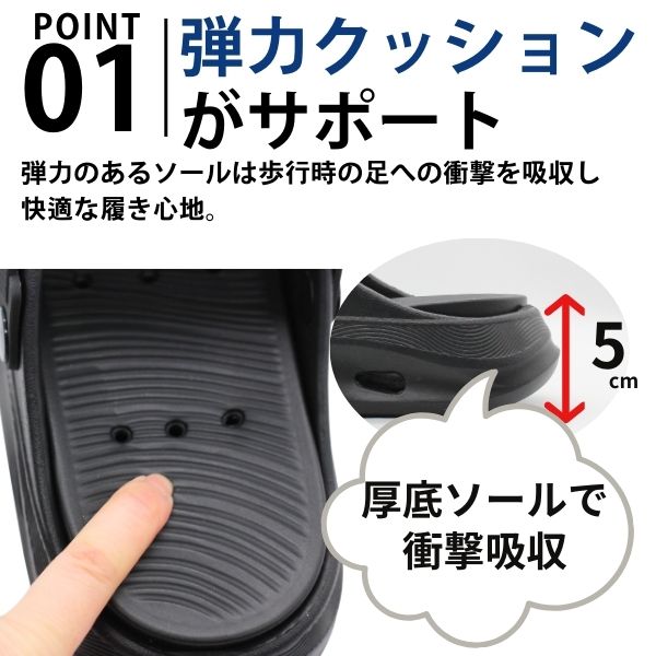 弾力のあるクッションソールで歩行時の衝撃を吸収して快適な履き心地。