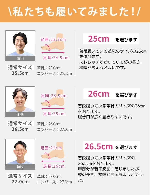 取り扱いサイズ:24.5cm 25cm 25.5cm 26cm 26.5cm 27cm