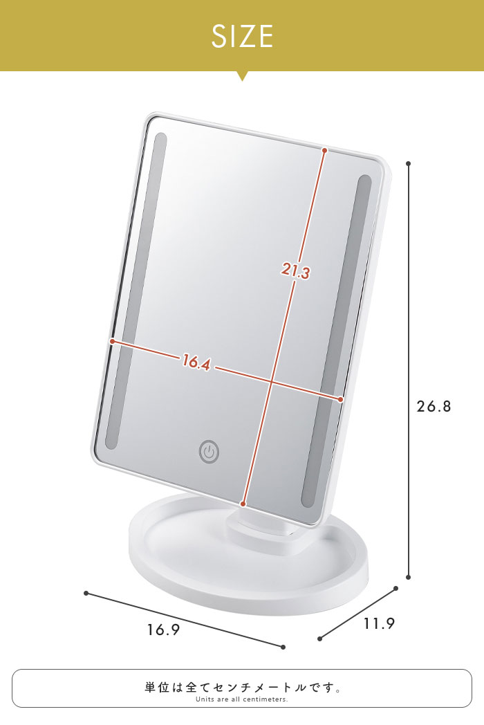 | 卓上ミラー おしゃれ ライト付き LED 幅16.9 奥行11.9 高さ26.8 おしゃれ タッチパネル 角度調整 縦 横 回転 電池式 USB給電 両用 小物収納 USBコード付き LEDライト ライティングミラー スクエア ライト 鏡 ミラー 電気 ハイライト 明るい 夜 写真 メイク 化粧 コスメ 置き型 卓上 タッチ式 ライト付ミラー 女優ミラー 女優鏡 女優ライト 化粧鏡 メイクミラー 照明 |