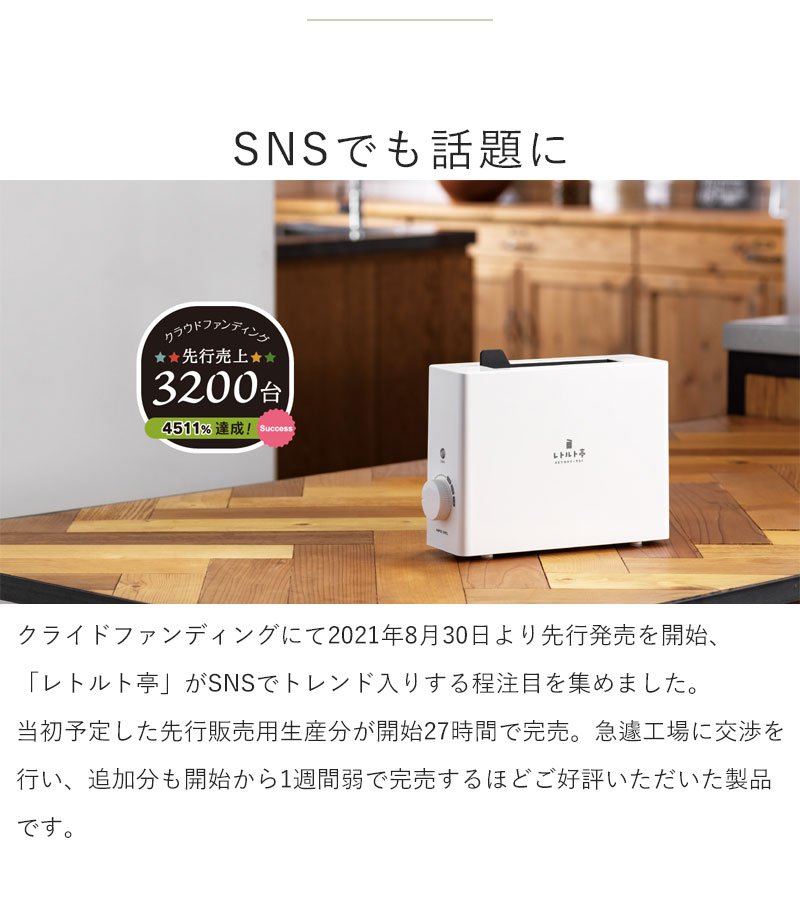 | 温めるだけで食べられる便利なレトルト食品。 そんなレトルト食品を、つまみを回すだけで調理できる画期的な専用調理器が誕生しました。 低温ヒーターによりパウチをそのまま温める仕組みで、お鍋もお湯もラップも使わず調理できます。 さらに火も使わないから、操作後はほったらかしでOK。 毎日忙しい方や時間を有効活用したい方にぴったりです。 |