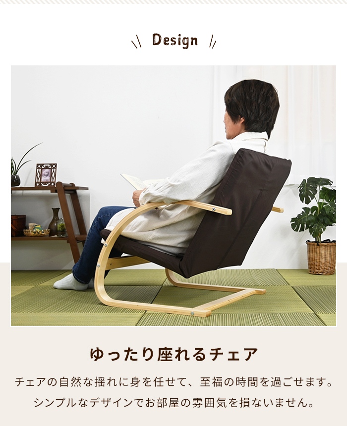 | ・自然な揺れでリラックスできるロッキングチェア。 ・軽量で掃除や模様替え時などの移動が簡単。 ・付属の六角レンチのみで簡単に組み立て可能。 ・シンプルなデザインでインテリアに馴染みやすい。 |