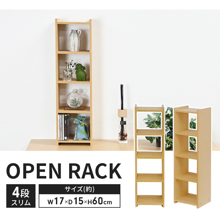 | 【オープンラック】 ● 2段 スリム ● 3段 スリム ● 4段 スリム ● 4段 ワイド ※このページは[オープンラック 4段 スリム]を販売しております。 |