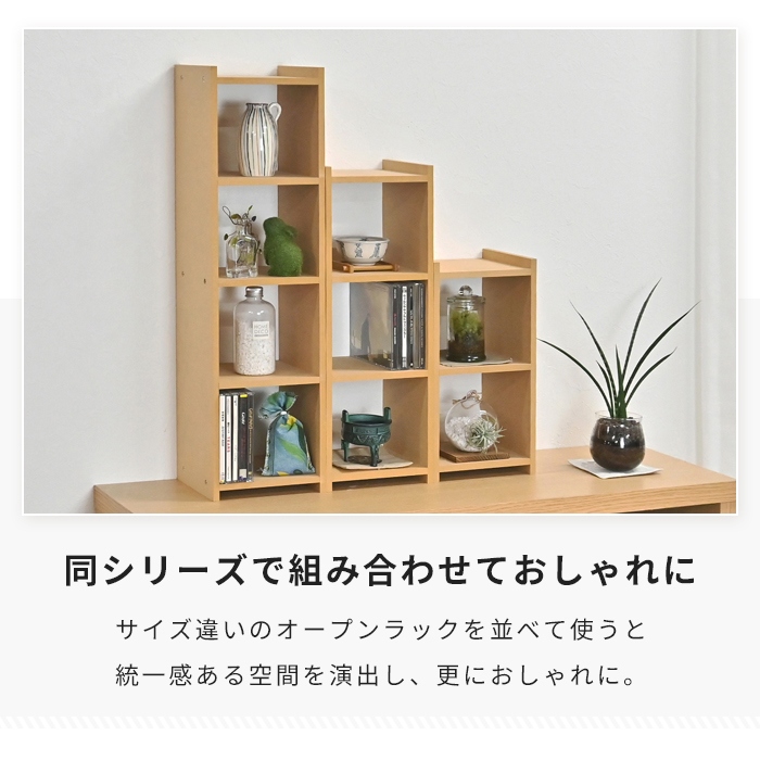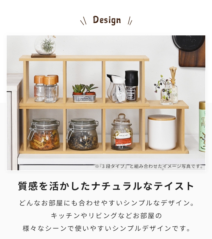 | ・ナチュラルな木製オープンラック ・調味料やスパイスの収納に便利 ・コスメや文房具、小物の収納にも対応 ・奥行約15cmでディスプレイ収納に最適 ・様々な場所で使えるシンプルデザイン ・サイズ違いと組み合わせて使えるシリーズ仕様 |