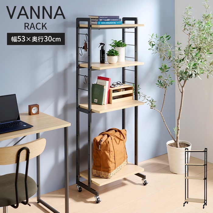 | ラック キャスター付き 幅53 奥行30 高さ146 オープンラック 4段 スリム 省スペース ディスプレイ 収納家具 S字フック 収納棚 収納ラック 4段ラック キャスター付きラック ディスプレイラック 隙間収納 木目 スチールフレーム インテリア シンプル おしゃれ リビング 書斎 子供部屋 オフィス |