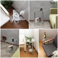 ガラステーブル [正方形/コーナー] ガラスラック サイドテーブル ナイトテーブル ベッドサイド ソファ ベッド サイド 透明 クリア 2段 オープンラック シェルフ ディスプレイ リビング テーブル ラック ディスプレイ [新品アウトレ