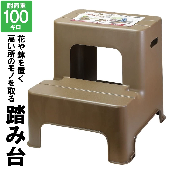 値下げ ステップ 踏み台 2段 二段 44cm 48.5cm 45cm 庭 屋内 置外 園芸 ガーデニング 脚立 ブラウン 茶色 洗車 大掃除 低身長 高い所