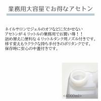 使用方法 ネイルサロンでジェルのオフなどに欠かせないアセトンが4リットルの業務用でお買い得!!