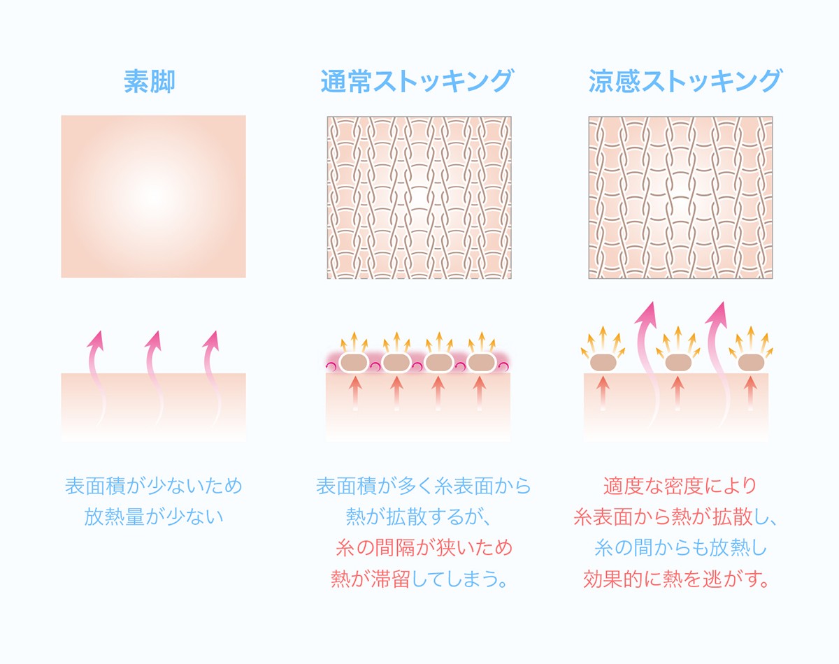 通常のストッキングの場合は熱を溜め込んでしまいます。