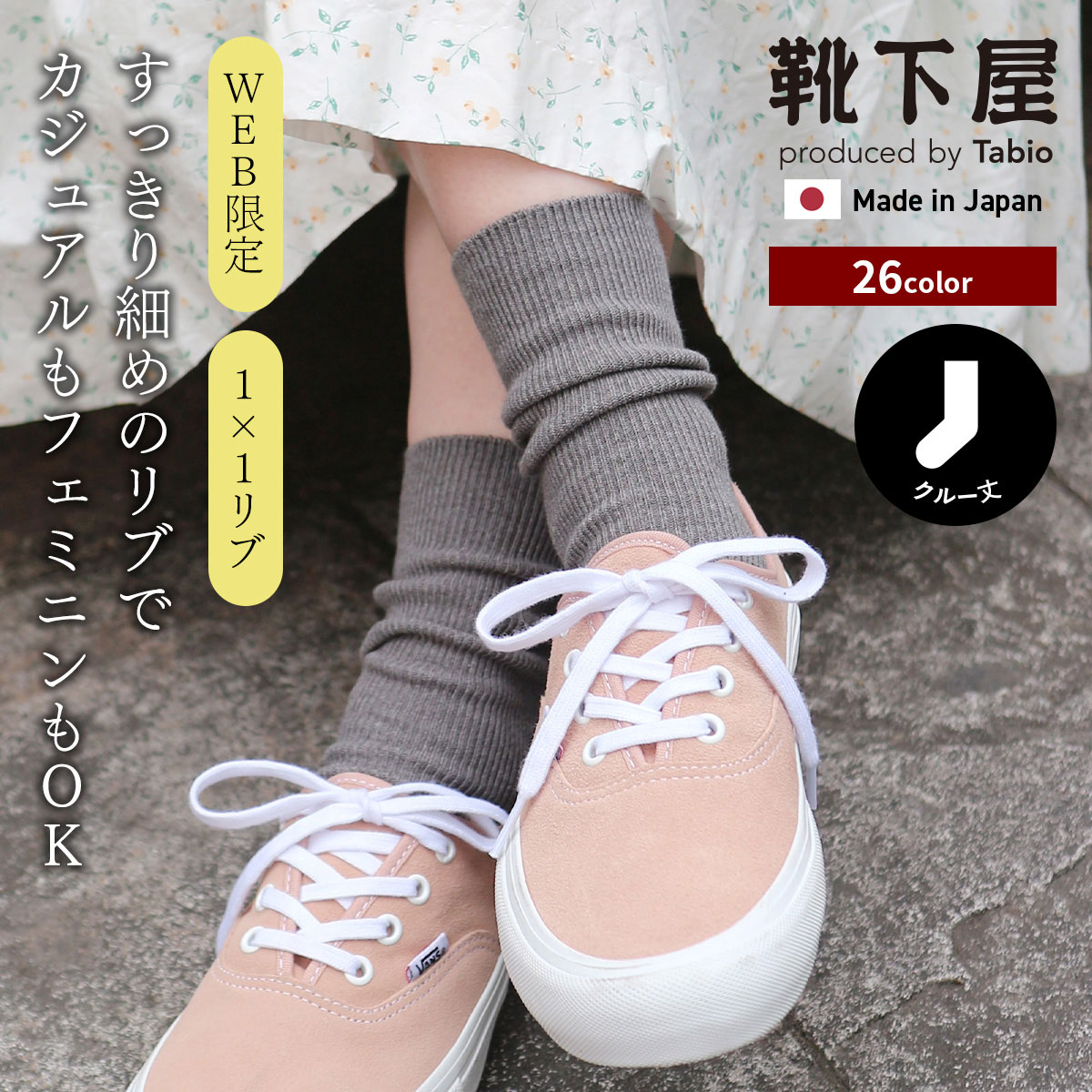 Tabio WEB限定 1×1 リブ ソックス 靴下屋 靴下 タビオ くつ下 クルー カジュアル フェミニン レディース 日本製