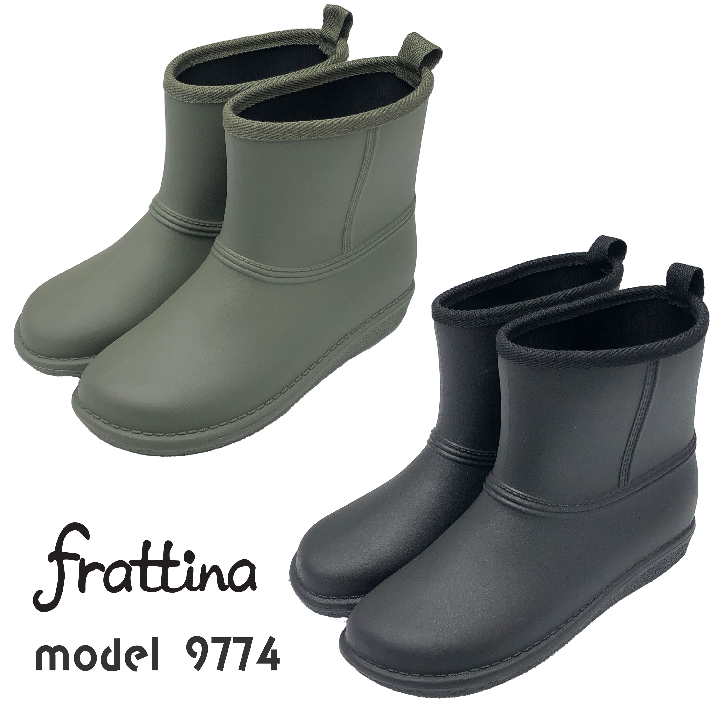 レディース レインブーツ ショート丈 完全防水 滑りにくい 吸湿速乾 メリヤス裏地 長靴 ブラック カーキ frattina 9774
