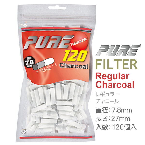 PURE ピュア フィルター レギュラー チャコール 120個入 手巻きタバコ 直径7.8mm 長さ27mm 手巻きたばこ用フィルター