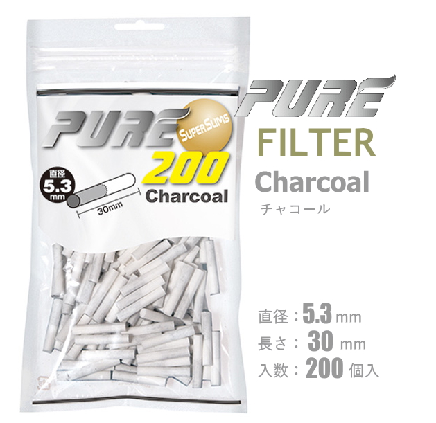 PURE ピュア フィルター スーパースリム チャコール 200個入 手巻きタバコ 直径5.3mm 長さ30mm 手巻きたばこ用フィルター