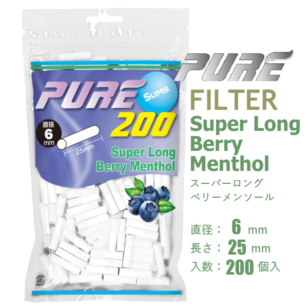 PURE ピュア フィルター ベリー 200個入 手巻きタバコ スリム スーパーロング 直径6mm 長さ25mm 手巻きたばこ用フィルター