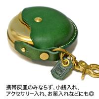 携帯灰皿、小銭入れ、アクセサリー入れ、お薬入れなど、使う人の用途に合わせて使うことができます。フック付きなのでバッグやベルトループにぶら下げて使うことが可能。革のカラーは全8色。愛煙家へのプレゼントとしてもお勧めです。携帯灰皿として使用した場合、約15本程度の吸いがらを収納できます。